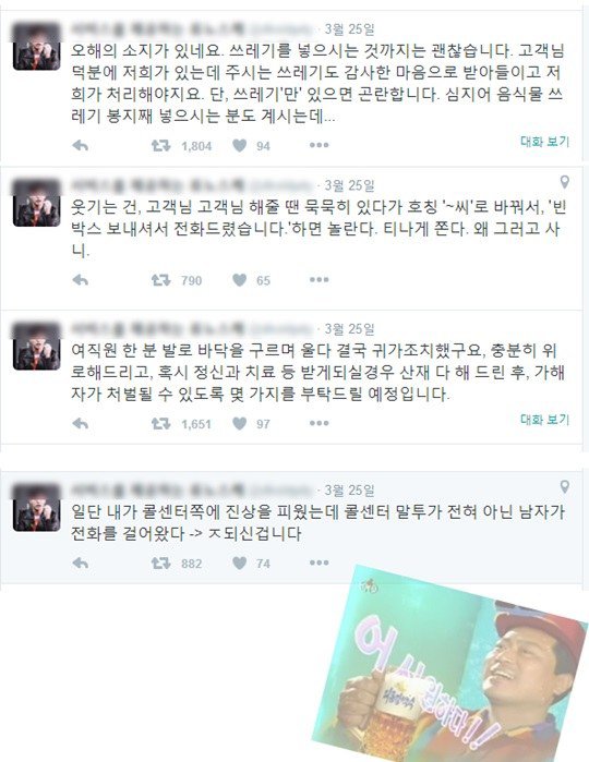 그는 진상 고객을 향해 "곧 남자 직원이 찾아갈 겁니다"라며 법적 대응을 예고했습니다.